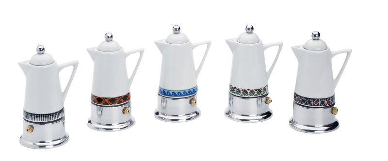 Tyto moka konvičky kombinují odolné nerezové nebo hliníkové tělo s jemně zpracovanou keramickou horní částí.