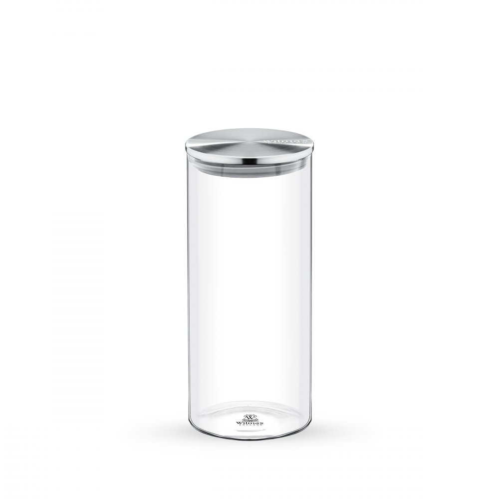 WILMAX dóza z termoskla 1500 ml, čiré sklo s nerezovým víčkem, 10x23 cm